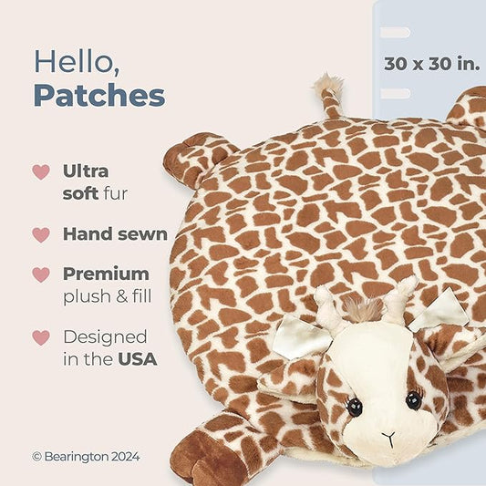 Bearington Baby Patches Tummy Time Mat, 30 x 30 Inch Giraffe Plush Stuffed Animal Blanket, Giraffe Baby Stuff for Nursery Décor