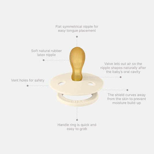 BIBS Pacifiers Colour Collection | Natural Rubber Baby Pacifier | Round Nipple | Set of 2 BPA-Free Soothers | Made in Denmark | 0+ Months (Pack of 2) | Vanilla
