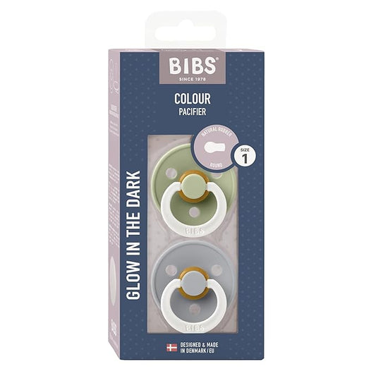 BIBS Pacifiers Colour Collection | Natural Rubber Baby Pacifier | Round Nipple | Set of 2 BPA-Free Soothers | Made in Denmark | 0+ Months (Pack of 2) | Sage