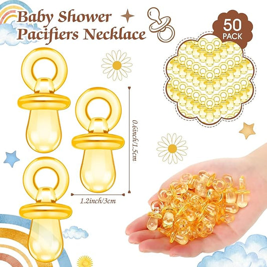 Thyle 51 Pcs Pacifier Hunt Baby Shower Games Include Hunt Sign and 50 Acrylic Pacifiers for Baby Shower Game Decoration Gift Sets Gender Reveal Party Decor (Retro Sun)