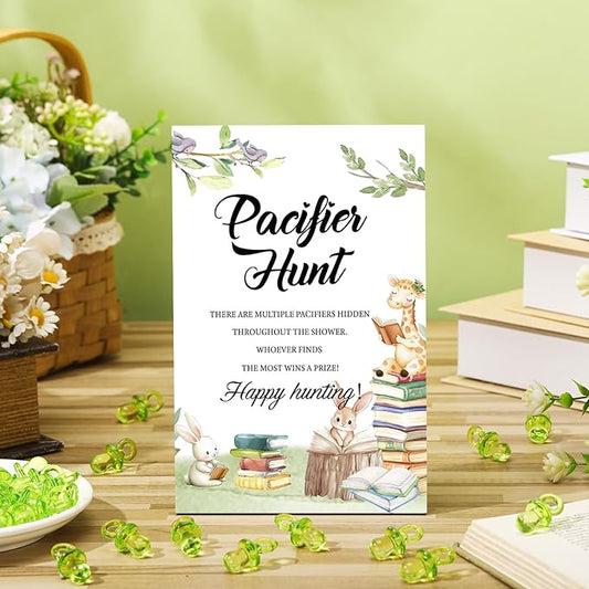 Thyle 51 Pcs Pacifier Hunt Baby Shower Games Include Hunt Sign and 50 Acrylic Pacifiers for Baby Shower Game Decoration Gift Sets Gender Reveal Party Decor(Story Book)