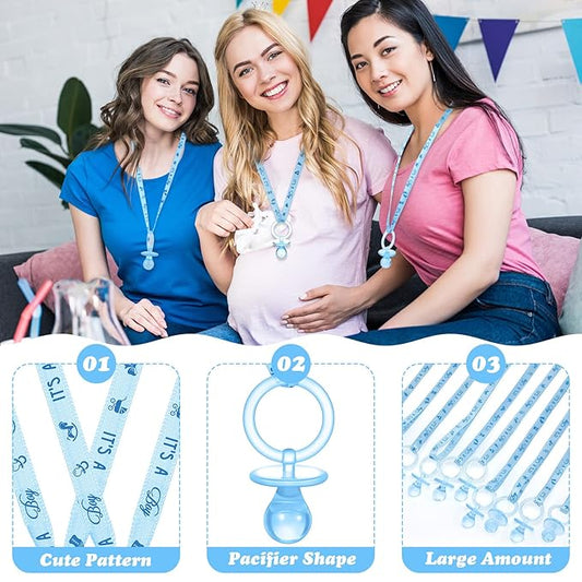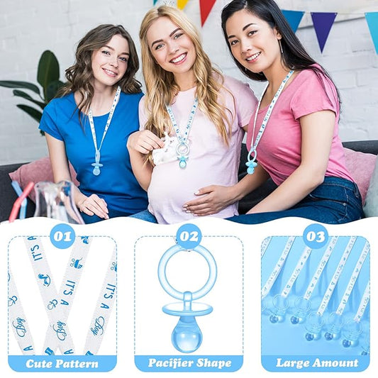Chengu 100 Pcs Baby Shower Pacifiers Necklace, Acrylic Pacifiers Necklace Charm for Gender Reveal Party Decorations(Blue)
