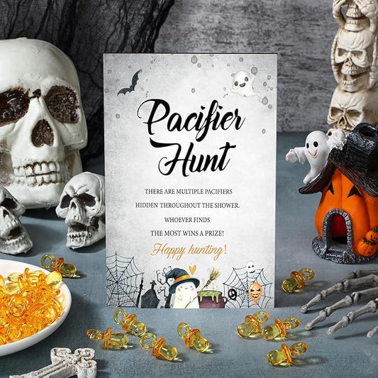 Thyle 51 Pcs Halloween Baby Shower Decorations Pacifier Hunt Baby Shower Games Set Include Hunt Sign and 50 Acrylic Pacifiers for Halloween Party Decoration Gift Sets Gender Reveal Party Decor