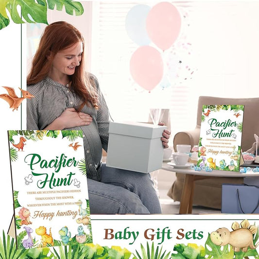 Thyle 51 Pcs Pacifier Hunt Baby Shower Games Include Hunt Sign and 50 Acrylic Pacifiers for Baby Shower Game Decoration Gift Sets Gender Reveal Party Decor(Dinosaur)