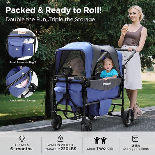Stroller Wagon for 2 Kids,Foldable Wagon Stroller with Canopy, All-Terrain Parent Organizer, Adjustable Handle & Pull Bar Baby Wagon for Infants and Toddlers, Lavender Blue