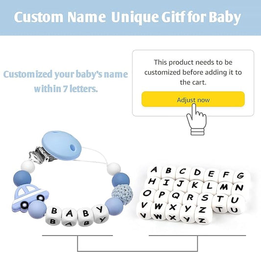 Personalized Pacifier Clip with Name for Baby, Customized Pacifier Clip Fits All Pacifiers,Car (Blue)