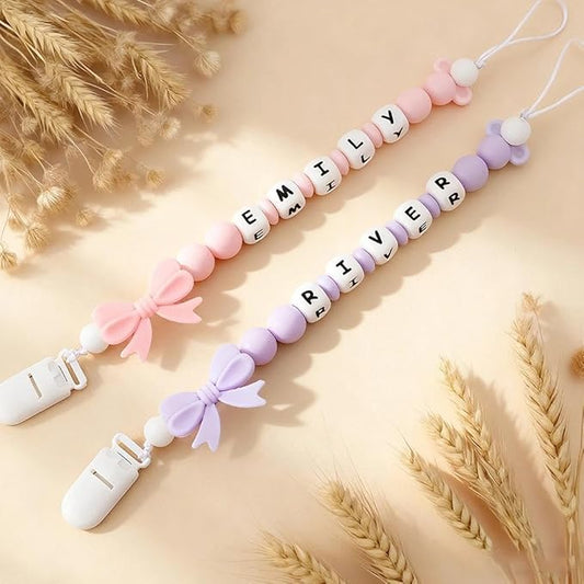 Baby Girl Pacifiers Clips Personalize Name Pacifier Clips Holder, Custom Pacifier Chain with Name for Baby(A)