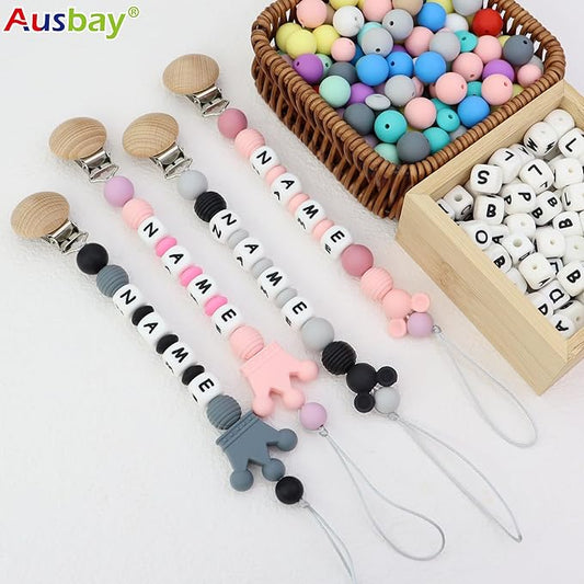 Personalized Pacifier Clip with Name and Customizable Teether Rattle (Colorful)