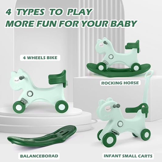 4 in 1 Rocking Horse for Toddlers 1-3 Years Old, Baby Rocking Toy Fun Birthday Gift for 1+ Kids, Ride on Toy with Detachable Balance Board and Footrest,Balance Bike with Push Handle