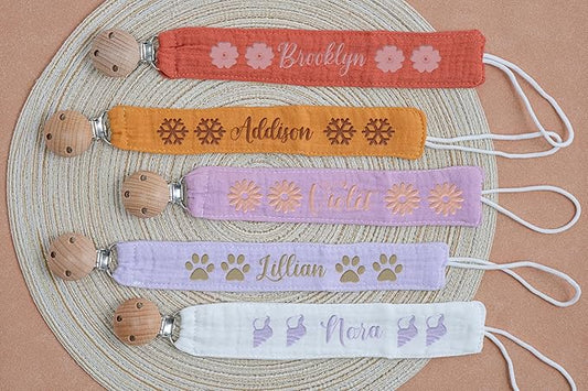 Custom Boho Pacifier Clip Holder with Embroidered Name – A Perfect Personalized Baby Baptism Gifts in Eco-Friendly Bamboo! (Green)