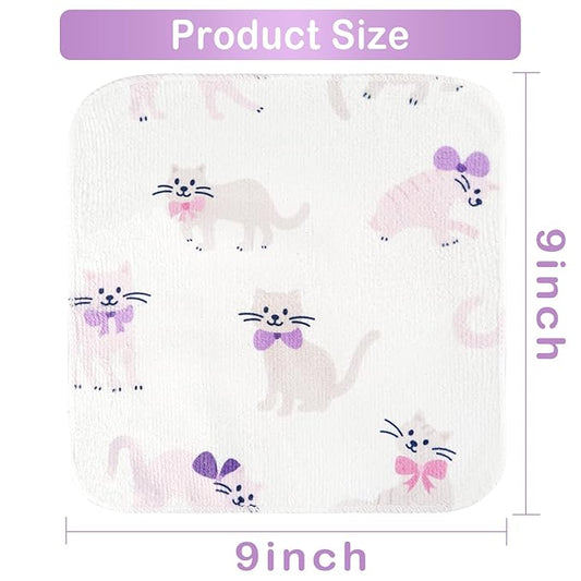 Viviland Baby Washcloths, Super Soft Baby Bath Towels for Newborn 24 Pack, Absorbent Face & Body Wash Cloth for Baby Girl, Cat Pattern, 9 x 9 inch
