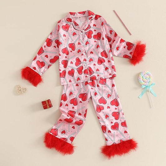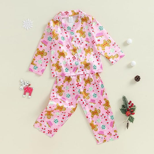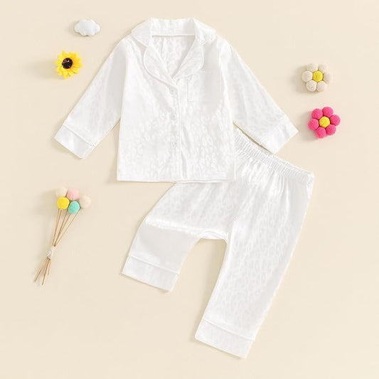 Toddler Kids Baby Girl Solid Pjs Ruffle Long Sleeve Button Shirt Top and Pants Cotton 2Piece Pajamas Set