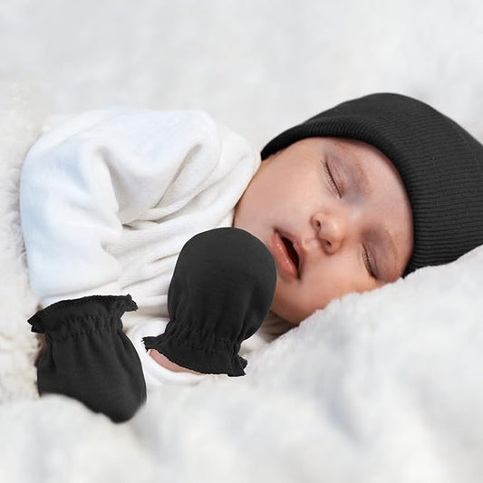 Newborn Baby Boy Girl Caps Mittens Socks Set Cotton Baby Essentials Accessories (Hats+Gloves+Socks)