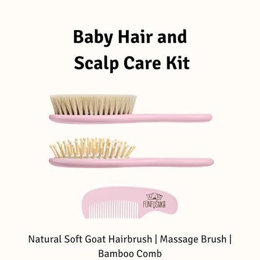 Baby Hair Brush Set for Newborns - Baby Brush and Comb Set - Ultra Soft Goat Hair Bristles, Perfect for Cradle Cap, Newborn Showers & Registries Gift, Comb Brush for Girls & Boys (Rosa)