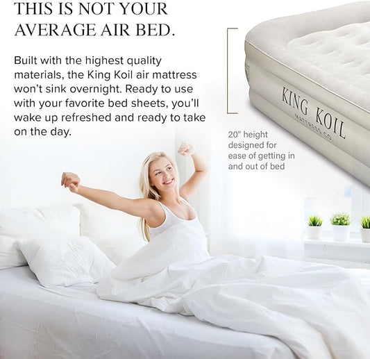 King Koil Luxury Full-Size Air Mattress with Built-In High-Speed Pump & Built-In Pillow Top, 20" Inflatable Double High Airbed for Home, Camping & Guest Comfort, Waterproof & Portable, 1-Year Warranty