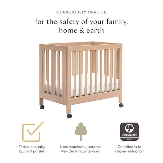 Babyletto Origami Mini Portable Folding Crib with Wheels in Canyon, 2 Adjustable Mattress Positions, Greenguard Gold Certified