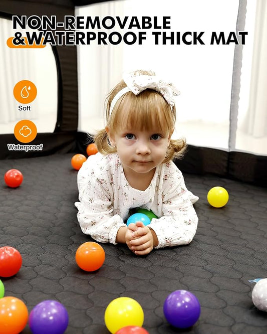 Foldable Baby Playpen with Non-Removable Thick Mat, Extra Large Collapsible Play Yard for Babies & Toddlers, Portable Travel Playpen with Gate, Safe Activity Center (51"×51" Black)