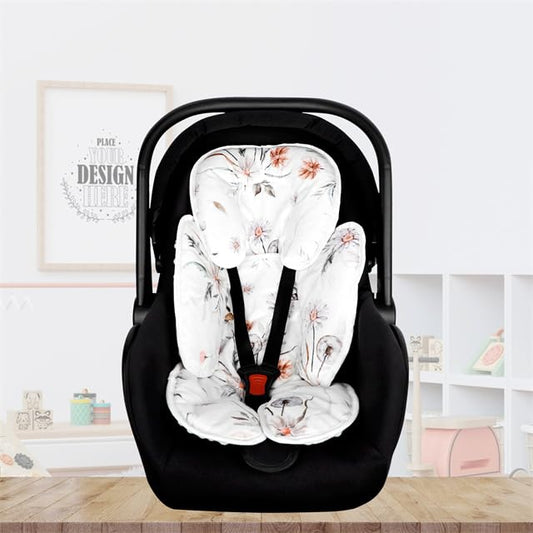 2 in 1 Infant Car Seat Insert, Car Seat Head Support Baby Girls Boys, Soft Newborn Carseat Insert Cushion, Perfect for Carseats, Strollers, Swings (White Flower)
