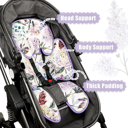 Infant Car Seat Insert for Newborn Girls Boys, HNHUAMING 2 In 1 Reversible Baby Car Seat Head & Body Support, Extra Soft Baby Car Seat Cushion Insert for Strollers, Swings, and Bouncers, Purple Floral