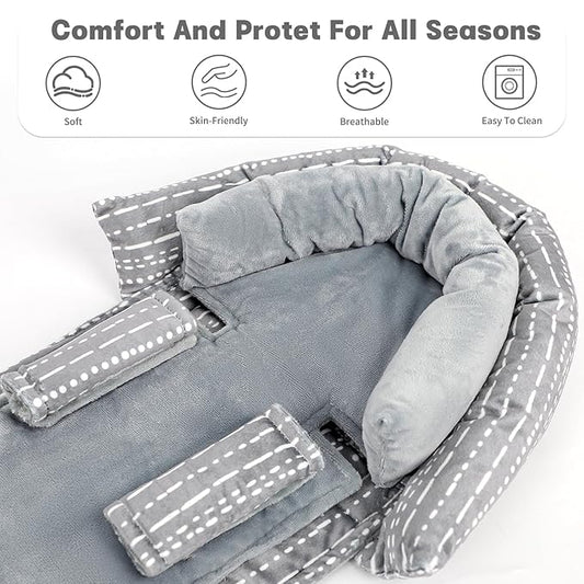 Infant Car Seat Insert & Strap Cover for Baby Boys, 2 in 1 Carseat Head Support Newborn, Ultra Soft Car Seat Cushion for Babies, Plush Fabric, Fit for Swing, Car Seat, Stroller, Bouncer