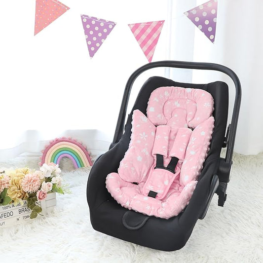 Pro Goleem Infant Car Seat Insert, Babybody Support for Toddler, Soft Minky Preemie Car Seat Insert, 2-in-1 Reversible, Perfect for Carseats, Strollers, Swings, Pink and White