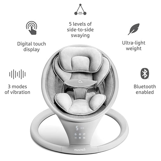 Munchkin® Vibration Baby Swing, Light Grey - Bluetooth-Enabled Smart Seat with Music, Motion, and Sounds