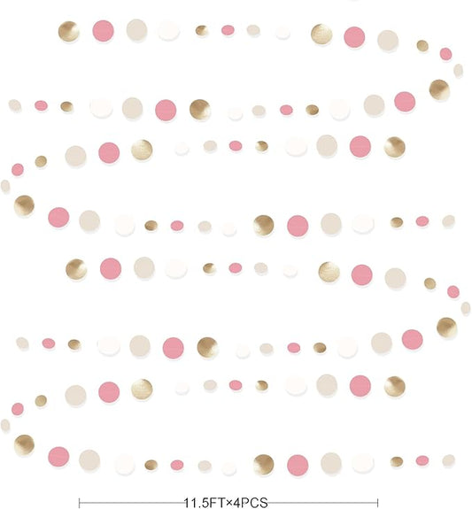 Champagne Gold Dusty Pink Decorations Circle Dots Garland Gold Pink Nude Neutral Cream White Boho Hanging Polka Dot Streamer for Bridal Shower Birthday Wedding Engagement Baby Shower Party Supplies