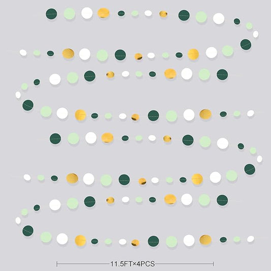 46 Ft Sage Green Gold Party Decorations Polka Dots Garlands Hanging Paper Circle Dots Streamer for Safari Wild Woodland Jungle Theme Birthday Baby Shower Graduation Wedding Party Decorations Supplies