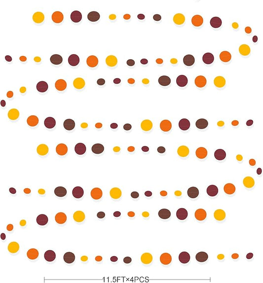 46Ft Fall Party Decorations Polka Dots Garlands Orange Yellow Burgundy Brown Hanging Paper Circle Dots Streamer for Birthday Wedding Baby Shower Fall Autumn Thanksgiving Harvest Party Decor Supplies