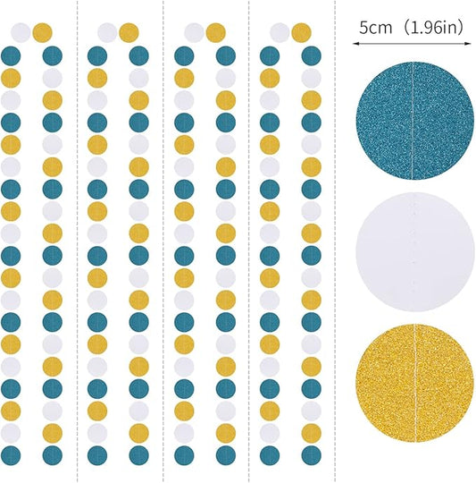 Teal-Turquoise White-Gold Party-Decorations Garland Streamers - 52Ft Woman Girl Birthday Paper Banner,Graduation Wedding Bachelorette Engagement Bridal Baby Shower Backdrop Decor Panduola