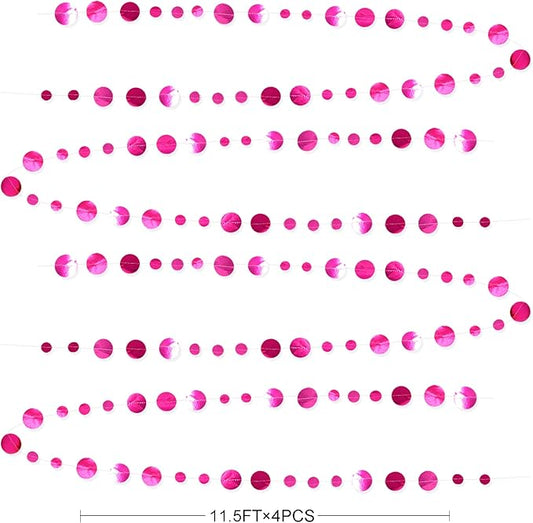 Hot Pink Party Decorations Circle Dots Garland Metallic Rose Pink Hanging Paper Polka Dots Streamer for Bachelorette Birthday Engagement Wedding Bridal Shower Anniversary Baby Shower Party Supplies