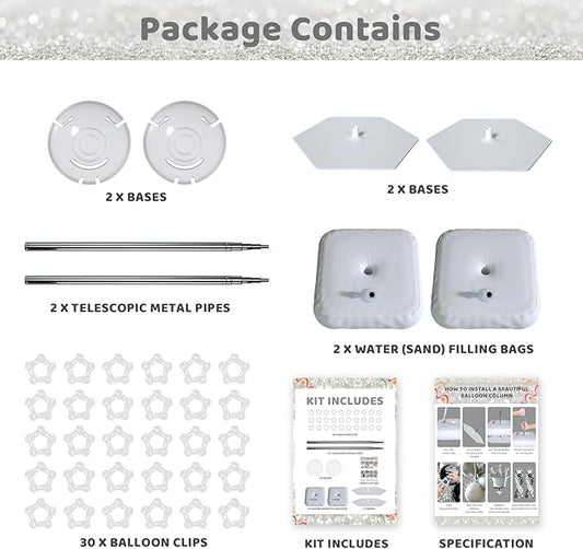 SINBEE Balloon Arch Stand, Balloon Arch Kit of 2, 7 Feet Height Adjustable Metal Balloon Column Stand for Party Decorations Wedding Birthday, Graduation Party Decoration, Baby Shower, Silver