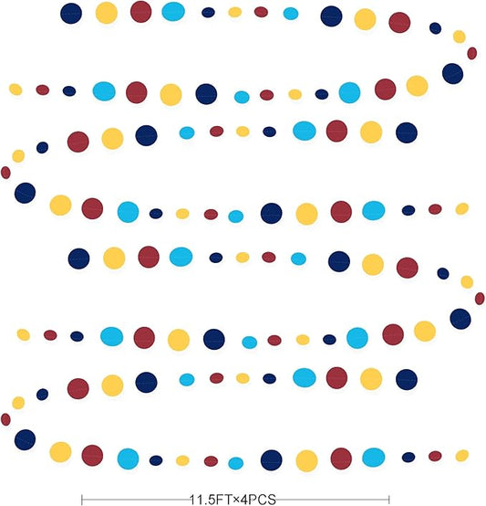 Red Blue Yellow Party Decorations Circle Dots Garland Hanging Paper Polka Dot Streamer for Carnival Circus Clown Fiesta Festivals Birthday Wedding Bridal Shower Wedding Baby Shower Party Supplies