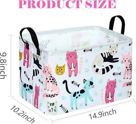 Cute Cat Pattern Gift Laundry Basket for Girls and Boys, Baby Storage Bin for Dirty Cloth, Toys, Kids Clothes Gift Storage Box with Handles