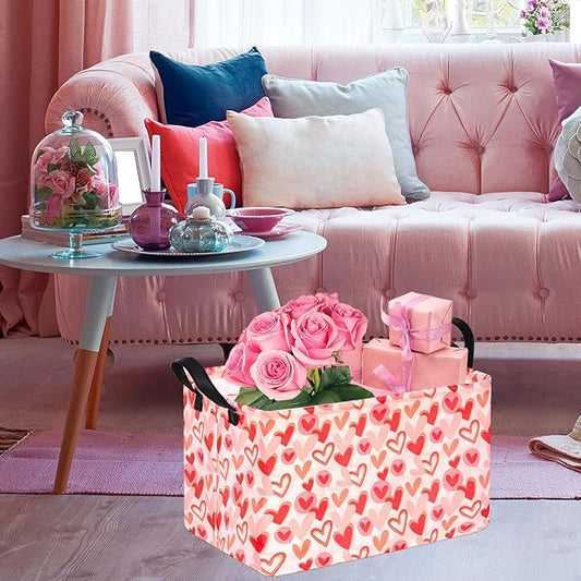 Rectangle Heart Partten Kids Gift Storage Basket Home Shelf Storage Basket Organizer Box Clothes Laundry Hamper Toys Nursery Basket Baby Laundry Basket with Handles