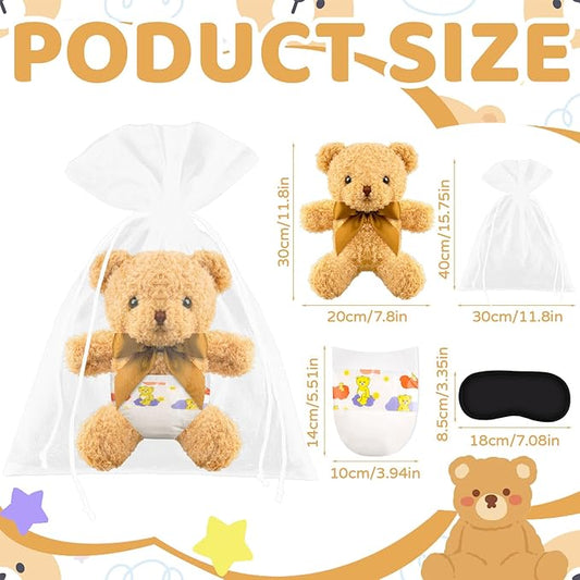 16 Pcs Baby Shower Games Bear Blindfolded Diaper Changing Games Kits with Bear Eye Mask Diapers for Baby Shower Winner Prizes Gifts Bear Party Decoration