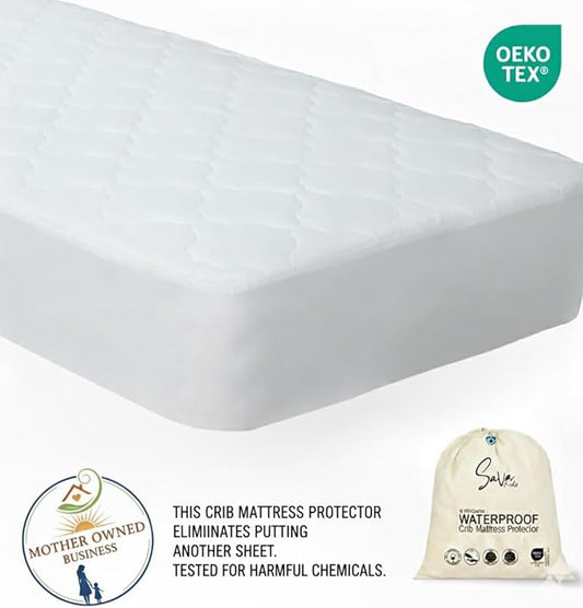 SavaKids 100% Natural Cotton Waterproof Crib Mattress Protector Sheet - Breathable, Fitted Pad for Babies & Toddlers, Ultra Soft & Noiseless (White)