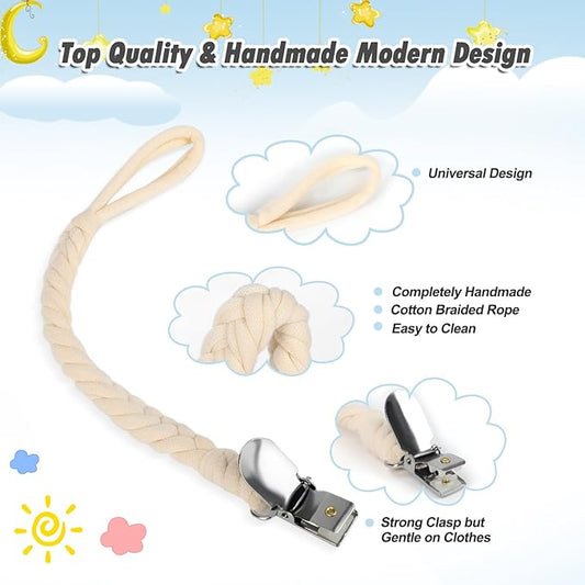 Pacifier Clip for Boys and Girls 6 Pack Baby Pacifier Holder Leash 100% Handmade Braided Fits All Pacifiers & Teething Toys Modern Unisex Baby Gift