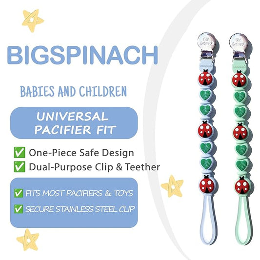 Silicone Pacifier Clips for Boys & Girls – Personalized Pacifier Holder;Neutral & Cute Pacifier Clips for Babies;Teething, Soothies – BPA-Free, Durable & Soft (Green+Blue)