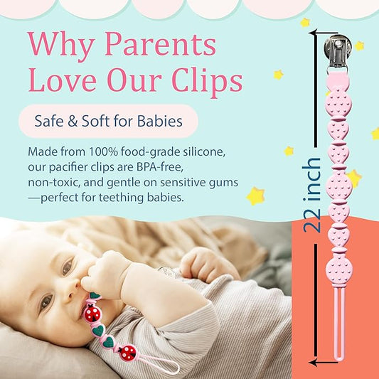 Silicone Pacifier Clips for Boys & Girls – Personalized Pacifier Holder;Neutral & Cute Pacifier Clips for Babies;Teething, Soothies – BPA-Free, Durable & Soft (Pink)
