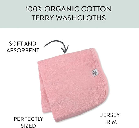HonestBaby 10-Pack Terry Wash Cloths in Gift Box 100% Organic Cotton for Infant Baby Boys, Girls, 10-Pack Light Pink, One Size