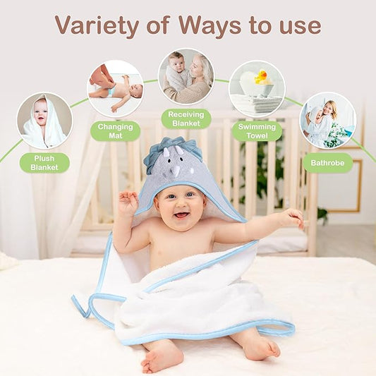 Mother's Choice Baby Hooded Towel - Large Size Cotton, Ultra-Soft & Absorbent Bath Towel for Newborns, Infants, Toddlers, Boys & Girls with Animal Hood (Dinosaur)