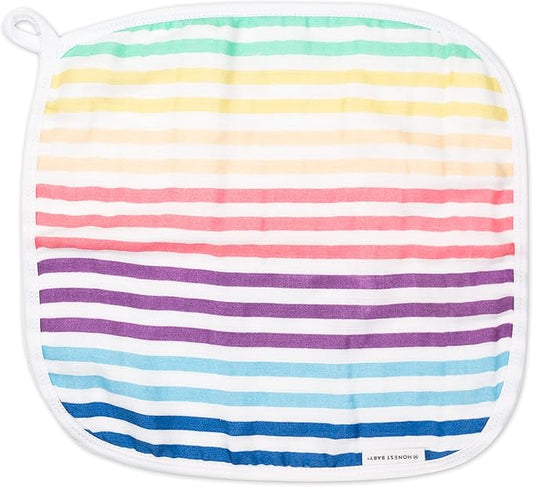 HonestBaby Organic Cotton Triple-Layer Woven Wash Cloths Multipack, Rainbow Stripe, One Size