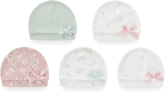 HonestBaby Unisex Baby Organic Cotton Washcloth Multi-Pack Winter Accessory Set, 5-Pack Pink, One Size