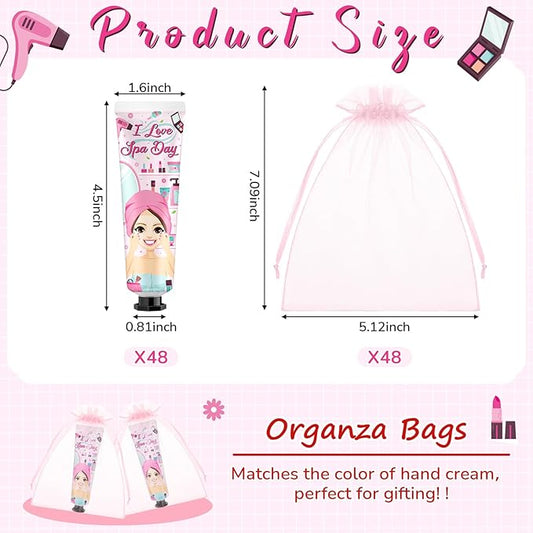 48 Sets Spa Party Supplies for Women Hand Cream Bulk Spa Birthday Party Favors Bachelorette Supplies for Girls Travel Size Lotion with Organza Bags