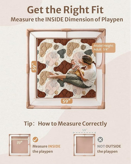 Blissful Diary Baby Play Mats for Floor, 47x47 Playpen Mat, Thicker Cushioning Padding Foam Playmat for Baby and Toddlers Infants, Non-Slip & Machine Washable, Boho Design