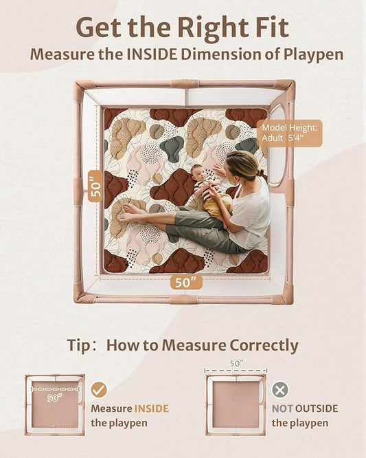 Blissful Diary Baby Play Mats for Floor, 50x50 Playpen Mat, Thick Cushioning Padding Foam Playmat for Baby and Toddlers Infants, Non-Slip & Machine Washable, Earth Tones Design