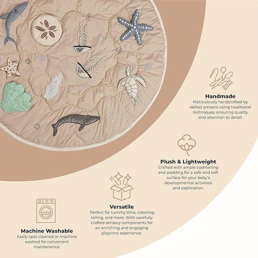 Crane Baby Activity Mat, Interactive Baby Play Mat for Boys and Girls, Sea Life, 36" x 36", Stimulating Baby Toys & Mirror, Infant Play Mat, Tummy Time Baby Floor Mat, Kids Play Mat, Tummy Time Mat
