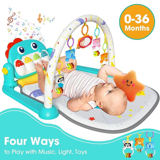 Eners Baby Gyms Play Mats Musical Activity Center Baby Piano Gym Mat Tummy Time Padded Mat for Newborn Toddler Infants(Green)