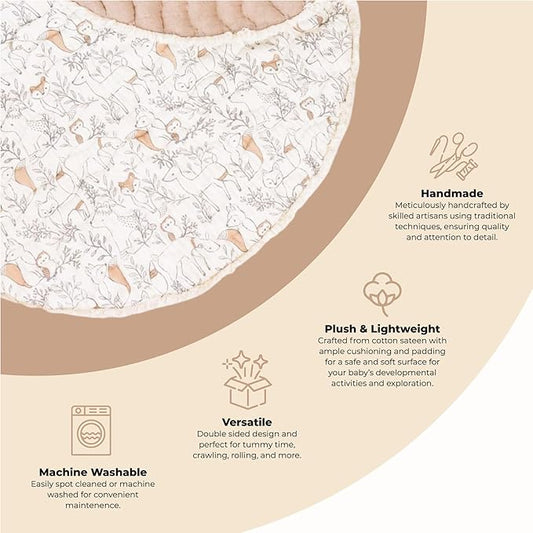 Crane Baby Baby Activity Mat, Woodland Animal Nursery Decor, Reversible Infant Play Mat for Tummy Time and Floor Activities, Infant Play Mat, 40" X 40"